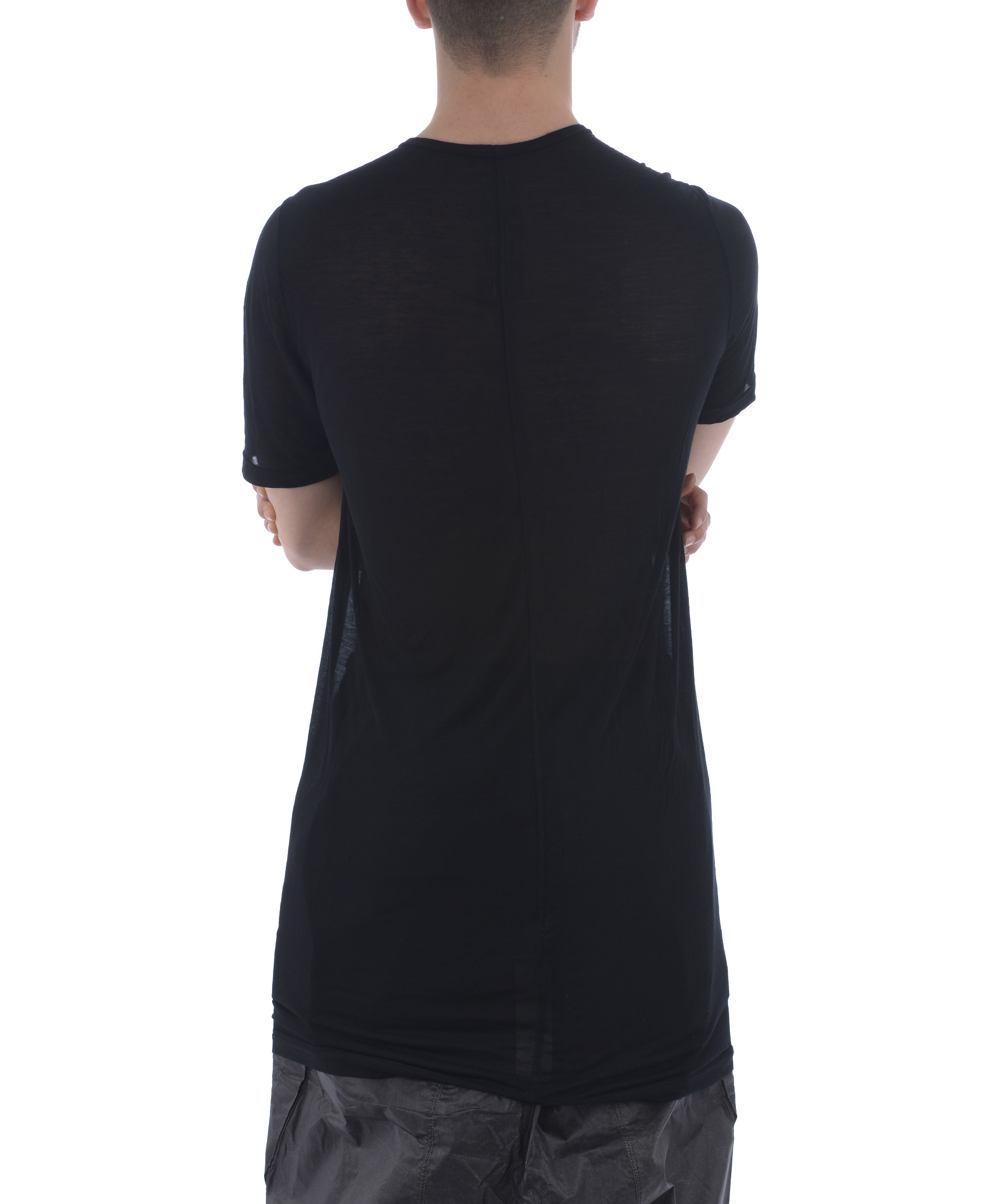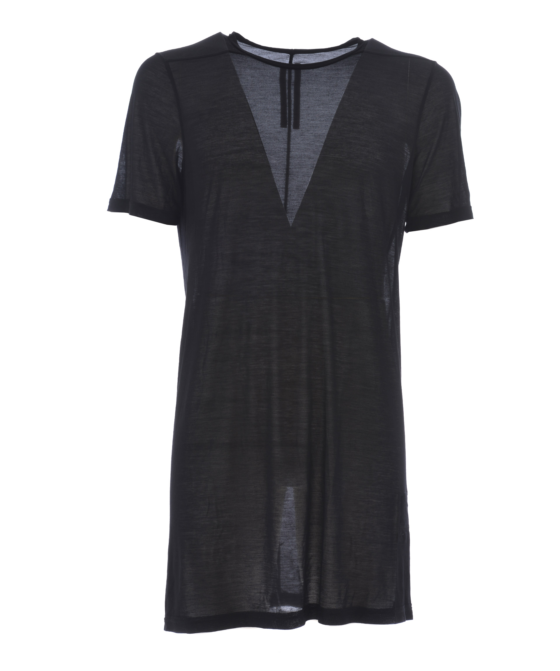 T-shirt lunga "DRKSHDW" Rick Owens in jersey leggero di viscosa Nero. Costruita a pannelli. Girocollo. Manica corta. Misura in foto S 100% viscosa