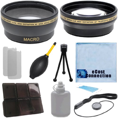ECost Pro Series 52mm 0.43X광각 렌즈+ 2.2X망원 렌즈와 디럭스 렌즈 악세사리 키트for Nikon d3000d3100d3200d5000d5100d5