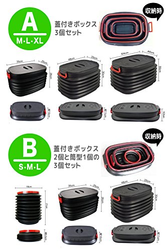 B세트 37L×1,18L×1,4L×1 합계3종류의 이득세트.37L과 18L은 뚜껑 부착입니다.콤팩트 카나 세단이나 소형SUV등에 추천!37L 중에(속에) 모두 수납 할 수 있는 때문에,사용하지 않는 때는 줄이면 콤팩트 입니다.