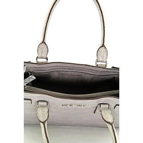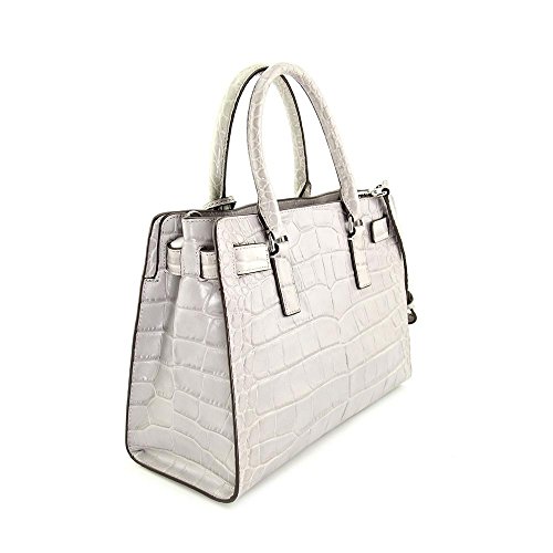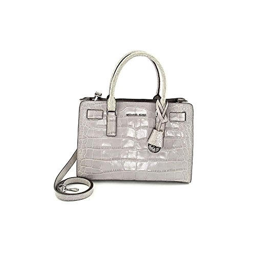 -. Title : Dillon E/w Satchel Embossed Leather ASH Grey/silver