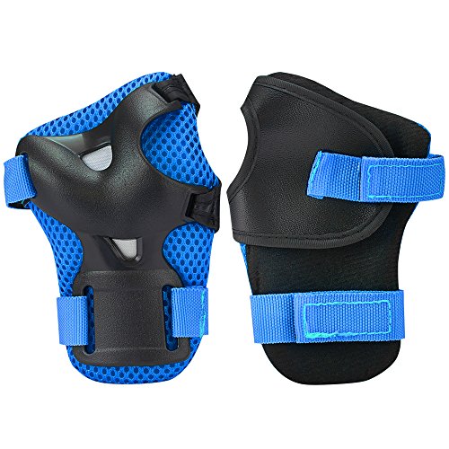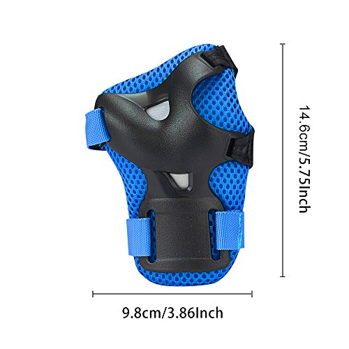 -. Feature : SAFETY PROTECTOR: Made from durable ABS plastic plates, effectively impact resistance, shock absorption cushioning lining inside reduce injuries during movement. / ONE SIZE FIT ALL: The adjustable straps could be flexible to different sizes of knee elbow and wrist, user could choose to hold its tightly to keep their position right when they are riding thier BMX, Bike, Rollerblades, Inline Skate, Skateboard, Biycycle, Scooter or choose the comfortable way to have breathable air between the pads and body / SUITABLE FOR VARIETY OF SPORTS: The knee pads, eblow pads and wrist guards provide good safety protection for kids when they participate in cycling,skateboarding,inliner skating,roller skating, balancing scooter etc. activities / SOFT AND COMFORT: Made of thickened breathable soft sponge, so that users experience a very good security, but also wear comfortable / PROTECTIVE GEAR SET: 2 x knee pads; 2 x elbow pads; 2 x wrist guards