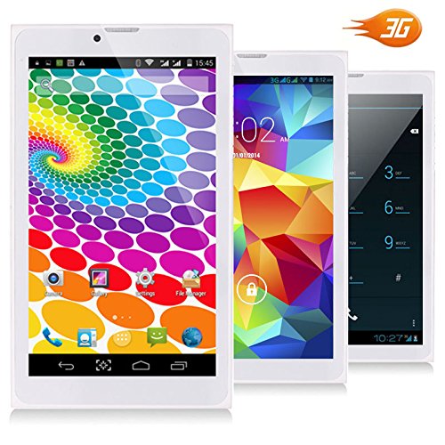 -. Feature : 7.0 inches Android 4.4 Kitkat 3G Phablet 2-in-1 Tablet PC + GSM Wireless SmartPhone (Call as mobile phone) with Google Play Store and HD Capacitive Multi-Touch Screen / GSM Mobile Cell Phone - Support 3G GSM QuadBand: GSM 850/900/1800/1900MHz WCDMA 850/2100MHz|Make and receive calls directly from the tablet itself with the built-in MIC and speaker / Powered by MTK MT8312 DualCore Processor 1.2GHz CPU, 8GB Internal Memory, Latest Android 4.4 Kitkat Operating System, Integrated 802.11 b/g/n, Bluetooth, Dual-Camera, Dual Sim and more. / WiFi 802.11 b/g/n Support - Connect to internet for A full Internet experience | Bluetooth enabled - connect to any bluetooth headset handsfree / Support Google Play Store and preinstalled - access to millions of free and paid-for applications available to download straight to your phablet.