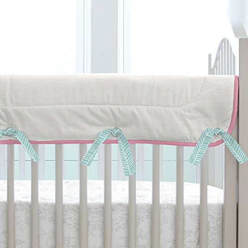-. Feature : Single (1) rail cover / Measures 50" long by 18" wide / Folds over top of crib rail / Reversible / Made in the USA