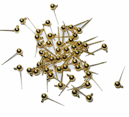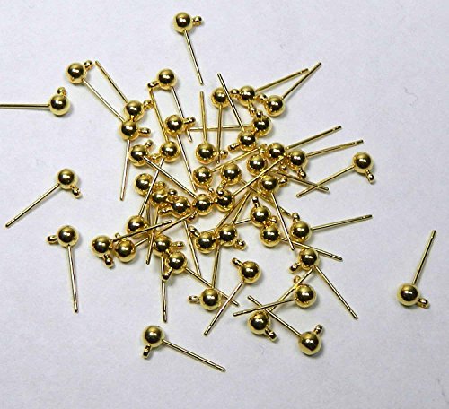 48 Gold Plated Brass Ear Studs 4mm Solid Ball Post with Loop Earring Finding Package of 24 Pair