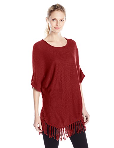 Elbow dolman sleeve solid wide crew neck rounded bottom fringed pullover