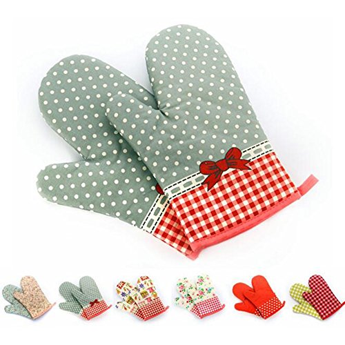 XRS Cotton Oven Mitts of Quilted Cotton Lining Heat Resistant Kitchen Gloves Microwave Pot Holders for Cooking Baking 2Pack (Blue)