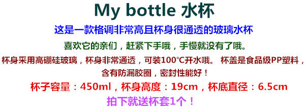 my bottle玻璃随行水杯子韩国学生创意便携带盖磨砂男女士随手杯