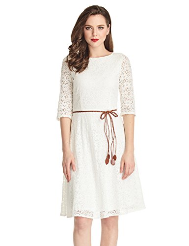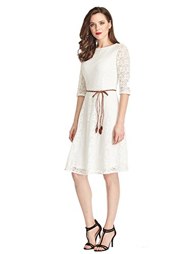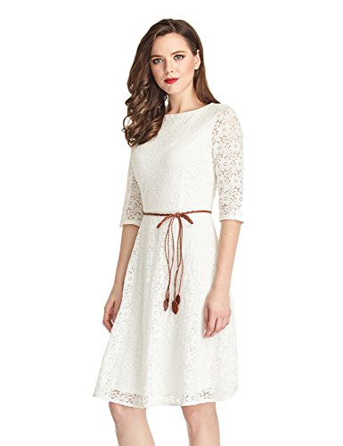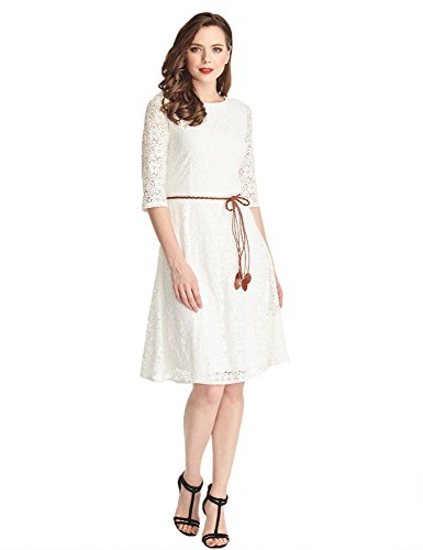 -. Title : LookbookStore Women's Ivory White Lace 3/4 Sleeves A Line Knee Length Dress