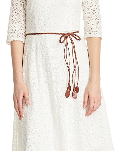 -. Feature : This lace knee length dress comes up with a skinny woven belt which has a contrast color. / Featuring a crew neck and the beautiful floral lace detailing, this A-line dress has a non pure white color. But this ivory white is also perfect color for wedding. / The dress length makes it a must have for your sP.R.Ing and summer collection. Partial lined but cooler than maxi dress. / The lightly skater cutting gives you enough space while perfectly flatters your silhouette. / 3/4 crochet sleeves. Back zip. Occasion: Semi-formal, wear to work, casual, party, cocktail, holiday. Model stats: Height 5'9", Bust 33.5", Waist: 24.5", Hip: 36", Cup B. Model is wearing size US 2.