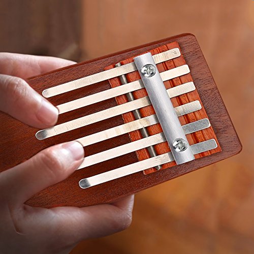 Features: 1. PREMIUM MATERIAL: Combined with rosewood main body and aluminum sounding bars, this thumb paino with delicate workmanship is durable for long time use. 2. EXQUITE: Small and exquite size making it convenient to carry and store. 3. MULTIPLE BENIFIT: Instrument training can bring your kids emotional, sensory and intellectual development, hand-eye coordination, and relationship improvement with parent. 4. USING METHOD: Hold the main body by two hands, and then use two thumbs to play with it. When the thumb presses and releases the piano, the slice will make sounds. 5. Ideal musical instrument for children do training and cultivate your child's interest.