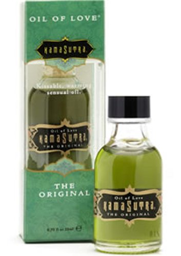 Product Description Kama Sutra's classic Original Oil of Love with hints of chocolate, vanilla, and cinnamon. Blow gently to release the oil's warming sensation.