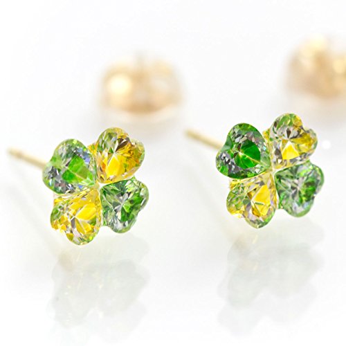 -. Title : 【8月誕生石】キュービックジルコニア(ペリドットカラー)&キュービックジルコニアイエロー パステル 四つ葉のクローバー ピアス【K18イエローゴールド(K18YG)】国産 日本製