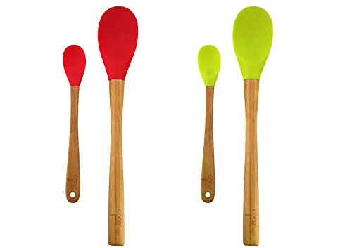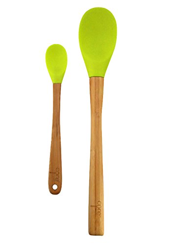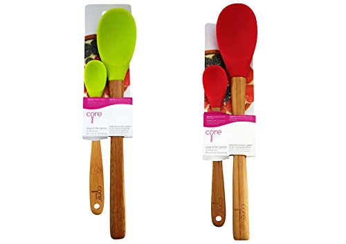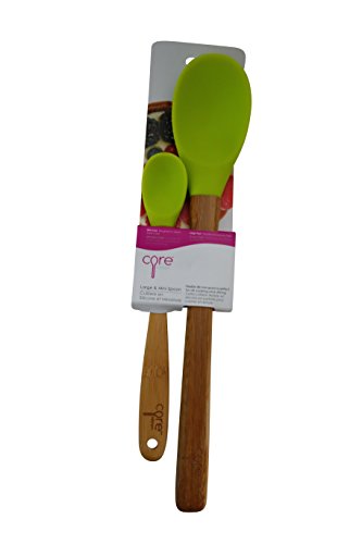 -. Brand : Core -. Feature : 2-PIECE SET: The Core Large and Mini Bamboo and Silicone Spoon Set contains two spoons. One large and one mini spoon are versatile enough to handle many different kitchen tasks. / COLORFUL: Each spoon in this set features a colorful silicone head. They complement your kitchen d'cor, and the soft silicone won't scratch pots and pans. / BAMBOO HANDLES: The spoons in this set feature bamboo handles. The bamboo is a lovely complement to the colorful head, and it provides a firm grip. / NO-SCRATCH: The large and mini spoons each have a silicone head. They are perfect for use on any type of pot or pan. / DISHWASHER SAFE: These spoons are dishwasher safe. You must remove the bamboo handles before placing in the dishwasher. -. Label : Core -. Manufacturer : Core -. ProductGroup : Kitchen -. ProductTypeName : KITCHEN -. Publisher : Core -. Studio : Core -. Title : Core Large and Mini Bamboo + Silicone Spoon Set