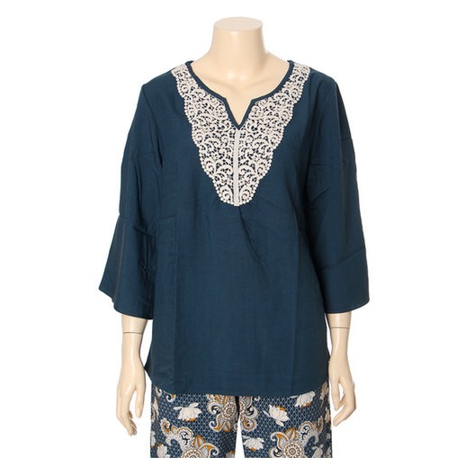 페이즐리 꽃이 믹스된 하의와 단색의 레이스로 포인트를 준 상의와