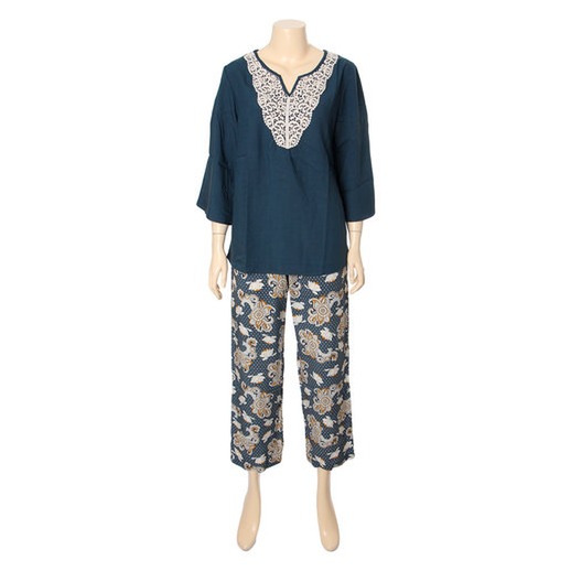 트렌디한 청록색 컬러로 제안되는 여성 실내복 세트입니다.