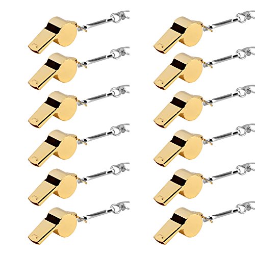 6MILES 12 Pcs Golden Copper Stainless Loud Whistles for Emergency Referee Coaches Training Sports With Black Lanyard