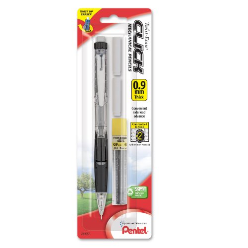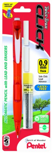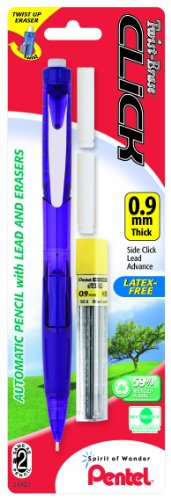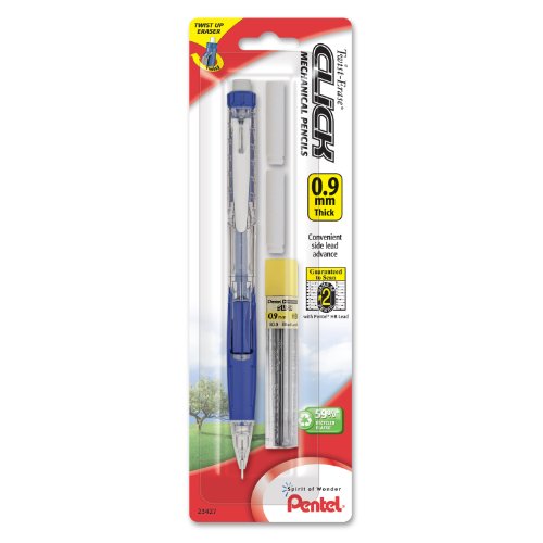 Pack includes 1 pencil, 1 tube of lead and 2 eraser refills. Packages will ship with translucent colored barrels or clear barrels with colored accents in one of the following colors: black, blue, orange or violet color barrels.