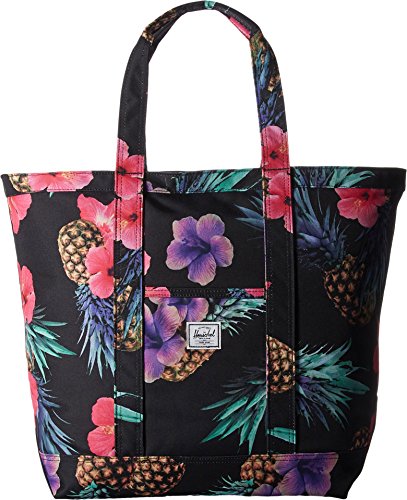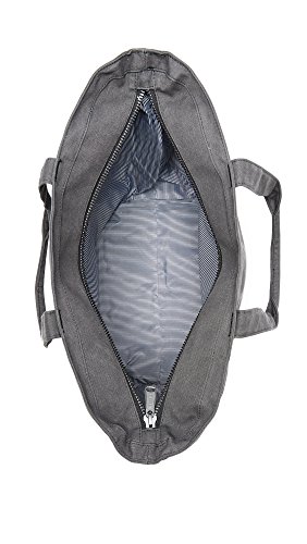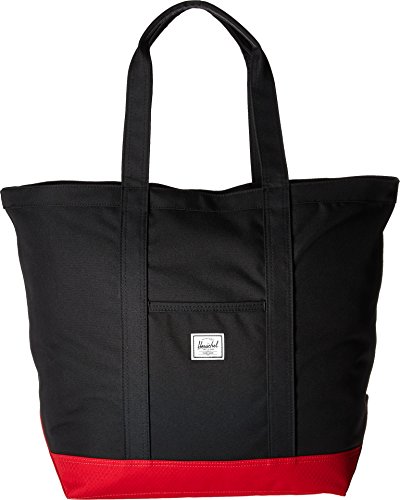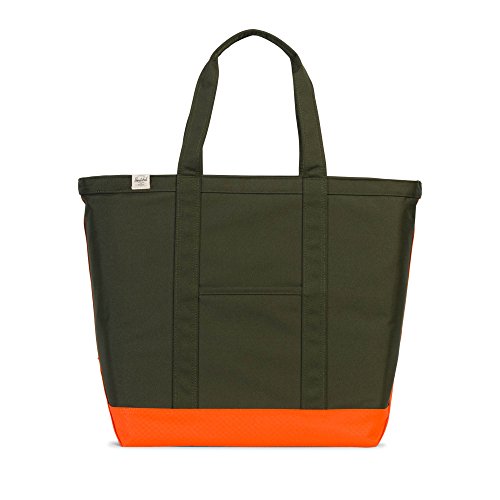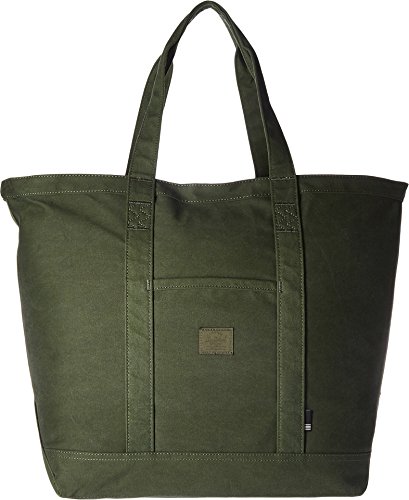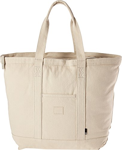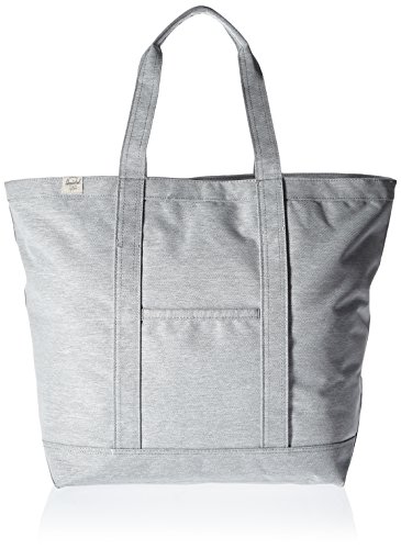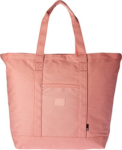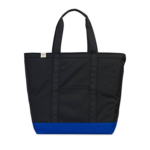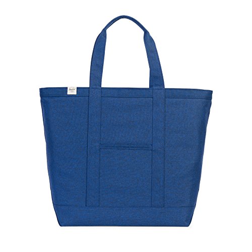 A roomy Herschel Supply Co. tote in sturdy canvas. Slim front pocket with a logo patch. The top zip opens to a lined, 1-pocket interior. Double handles.