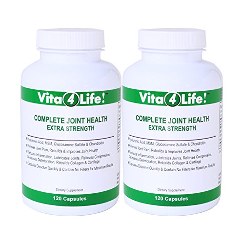 Studio : vita4life Publisher : vita4life Binding : Health and Beauty Product Description Vita4Life Complete Joint Support - Extra Strength 240 Count Muhammad Ali once said, "Age is whatever you think it is. You are as old as you think you are." While that may be true to an extent, that same saying is not true about our joints. As we age, our joints give way to deterioration and inflammation which causes soreness, stiffness, and pain. Our Complete Joint Support formula is a comprehensive blend, hand selected to relieve joint pain and to rebuild and improve overall joint health. We have worked with nutritionists and our lab to put together this highly potent blend of Hyaluronic Acid, MSM, Glucosamine Sulfate, and Chondroitin for complete joint relief. Each capsule breaks down in less than 2 minutes and contains no fillers to provide complete absorption to the system for maximum results. How do each of these supplements improve joint health? Hyaluronic Acid (HA) - Naturally produced by the body, HA is a lubricating substance found mainly inside the body's joints, tendons, cartilage, eye sockets, and skin tissues. It assists in retaining collagen, increasing moisture, and provides flexibility and elasticity. Methylsulfonylmethane (MSM) - MSM is used to improve immune system function, lower inflammation, and restore healthy bodily tissues.Research shows that patients with a variety of joint related issues such as osteoarthritis have improved their range of motion and reduced pain, swelling, and joint mobility by taking MSM. Glucosamine Sulfate - Glucosamine sulfate acts as a natural joint lubricant, shock absorber, and has anti-inflammation properties to relieve joint, bone, and muscle pain. Our body uses glucosamine to help form tissues such as cartilage and plays an important role in the building of our joints, tendons, and ligaments. Chondroitin - Chondroitin helps our body naturally rebuild cartilage and accelerates the recovery of tissue following exercise. 0