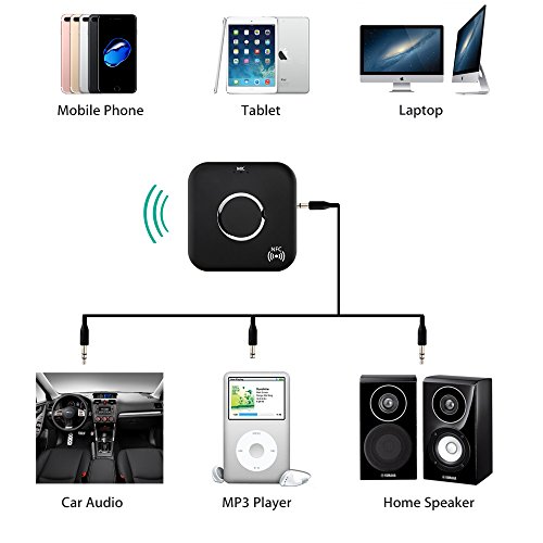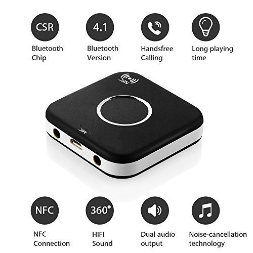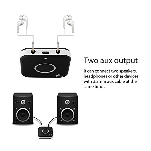 Bluetooth 4.1 Audio Receiver, Wireless Audio Adapter (NFC-Enabled) with Dual Aux 3.5mm Output and Handsfree Function for Home/ Car Stereo System, Mobile Phones, TV, PC
