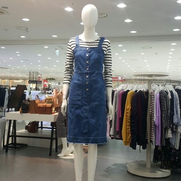 라인이잡힌 멜빵 데님 원피스 입니다