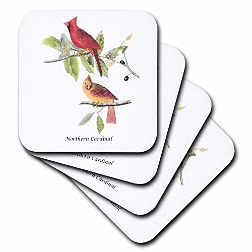 3dRose cst_114018_1 Northern Cardinal by John James Audubon-Soft Coasters, Set of 4