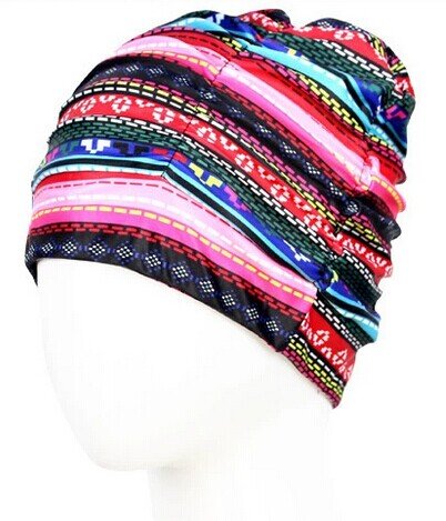 Qishi's Color Stripe Cloth Swimming Caps for Women