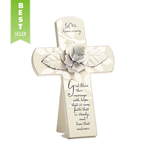 Enesco This is the Day by Gregg Gift 50th Anniversary Rose Whitewash Cross Wall Décor, 7”