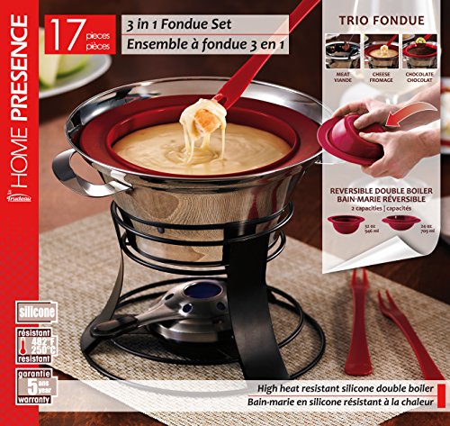 Trudeau Home Presence Electra 50 Ounce Stainless Steel Fondue Set With Reversible Double Boiler