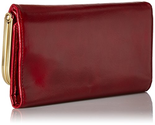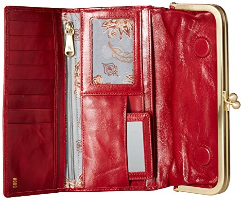 Superbly mixing class and function, this beautiful Rachel Clutch Wallet by Hobo transitions perfectly from day to night! Hobo is all about making stylish yet purposeful women's leather accessories and this wallet is no different. This clutch is made from top-grain leather which has been extra tumbled for a unique, broken-in vintage look and shine. This fully lined clutch has a large exterior pocket with a brushed finish metal kiss lock closure. The interior features 8 card slots, 3 currency pockets, 1 clear ID window, 1 zippered coin pocket, and a slip pocket with a cosmetic mirror. Show off your vintage style with this gorgeous clutch! Measures 8.25" x 3.75" x 1.5", folds out to 11.25" wide.Feature
