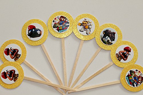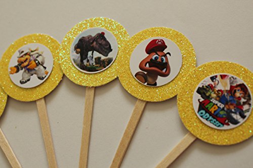 8 Odyssey Mario Yellow Cupcake Toppers Super Yoshi Bowser Koopa Luigi Princess Peach Birthday Party Supplies