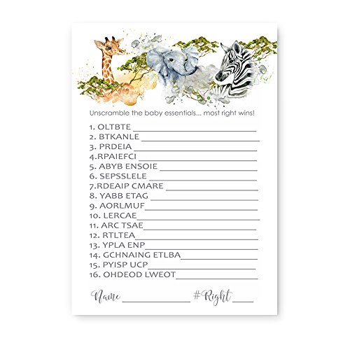 Jungle Animal Baby Shower Game Word Scramble ( 25 Pack )