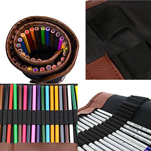 Design: Stylish, lightweight, well-made canvas roll is secured with faux leather ties; individual compartments protect and hold up to 72 of your favorite drawing pencils and an eraser. protect the pencils better, keeps things neatly organized and accessible
