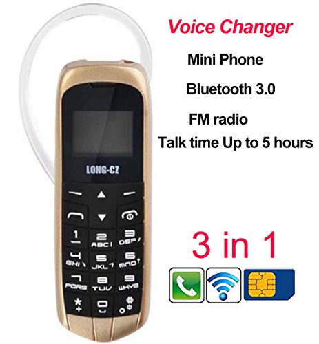 -. Feature : Multi-function: Kinds of Voices Changer effects;Not only do wireless bluetooth headset, you can also do bluetooth dial pad and standby mobile phone / Frequency:GSM 900/1800/850/1900 / 12 languages: English((default), French, Italian, Russian, Hindi, Arabic, Thai, German, Dutch, Spanish, Portuguese, Vietnamese / Insert a SIM card, it can be used as a independent cell phone / The smallest size phone in the world