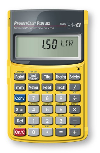 'Metric Project Calculator, Length 120mm, Width 75mm, Depth 10mm, Display Digits 11, Display LCD, Display Dimensions 15 x 55mm, Solve Square-Up Diagonals Using Square Root for Truer Construction. Find The Number of Studs Needed for A Wall. Use Default On-Center Spacing (400mm) or Store A Custom Setting. Find The Number of Tiles for An Area. 9 of The Most Popular Metric Tiles Are Built-In.'