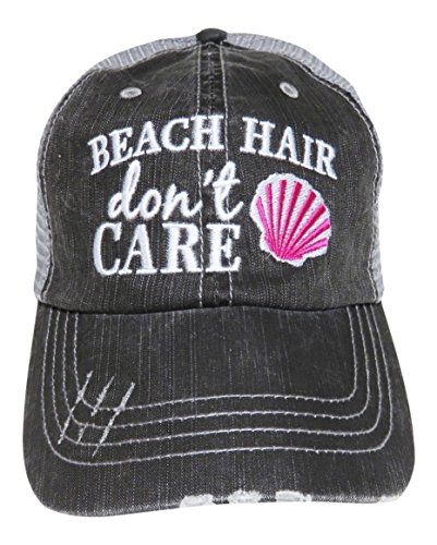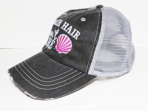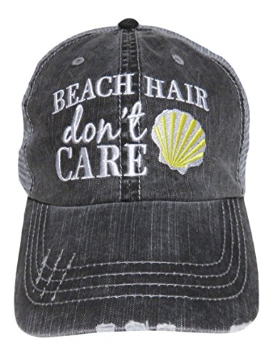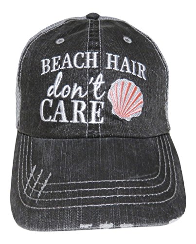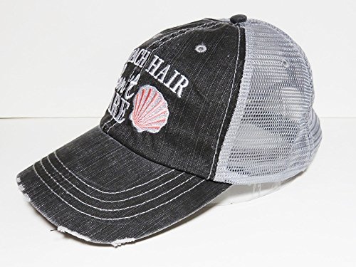 (Spirit Caps)/Accessories/Hats/DIRECT FROM USA/Embroidered "Beach Hair Don't Care" Distressed Look Grey Trucker Baseball Cap