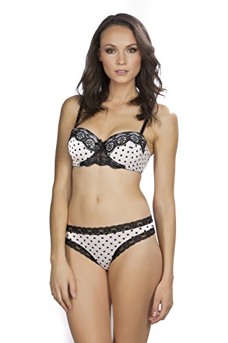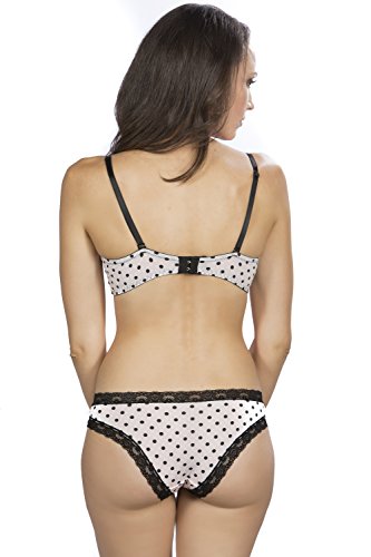 -. Binding : Apparel -. Brand : Hers by Herman -. Department : womens -. Feature : 90% nylon 10% spandex lace 85% nylon 15% spandex / Hook and eye closure / Adjustable straps / Features a bra and matching panties! / Flirty and figure flattering! With a hint of sex appeal, this bra and panty set is great worn under your clothes, or worn as lingerie! -. ProductGroup : Apparel -. ProductTypeName : BRA -. Title : Hers by Herman Women's Baby Polka Dot Push Up Bra Bikini and Thong Set of Three