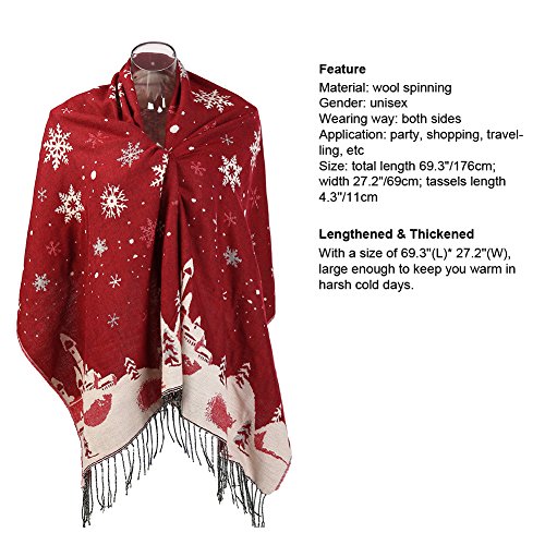 Vbiger Christmas Unisex men women Reversible Winter Scarf Oversized Warm Wrap Shawl Thickened P...