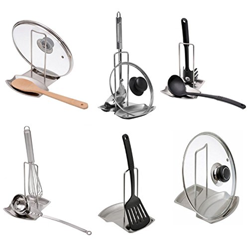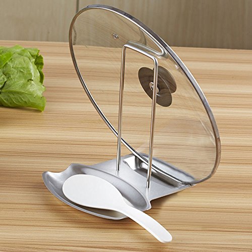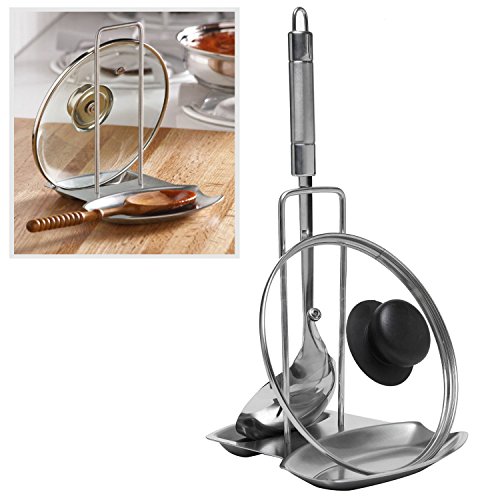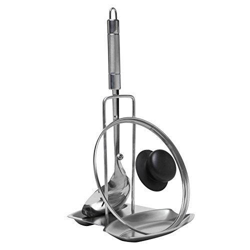 Modern Stainless Steel Upright Spoon Rest / Pot Lid Holder Tray - MyGift