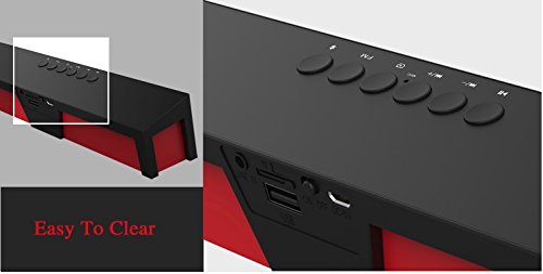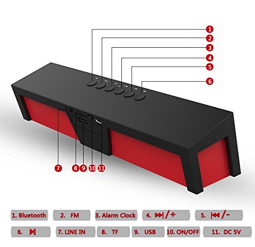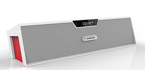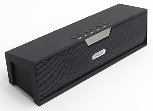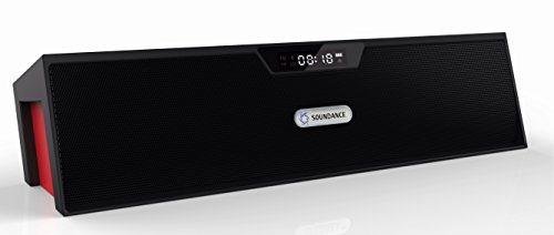 The Soundance SDY019 Portable Bluetooth Speaker offers high quality stereo sound enjoyment with portability. Two 40mm, 6-watt speaker with enhanced bass resonator and a large speaker cavity deliver excellent sound. It's 9.4 X 2.1 X 2.4 inches and 0.9 pounds in weight. This small and powerful speaker is perfect as bedside radio and music player and also can be taken on vacation, camping and friends gathering. The Bluetooth device can be connected from 35 feet away. It's easy to pair and it remembers the device that connected last time and connects automatically. Volume control and track change can be done on the button or from your smart phone wirelessly. Besides Bluetooth source, Soundance SDY019 can also play audio from 3.5mm audio jack and almost all formats of audio file from TF card/SD card and USB storage device via the sockets at the rear side of the speaker. The LED display shows time, alarm clock, FM radio and Bluetooth status as well as battery level. Package includes: