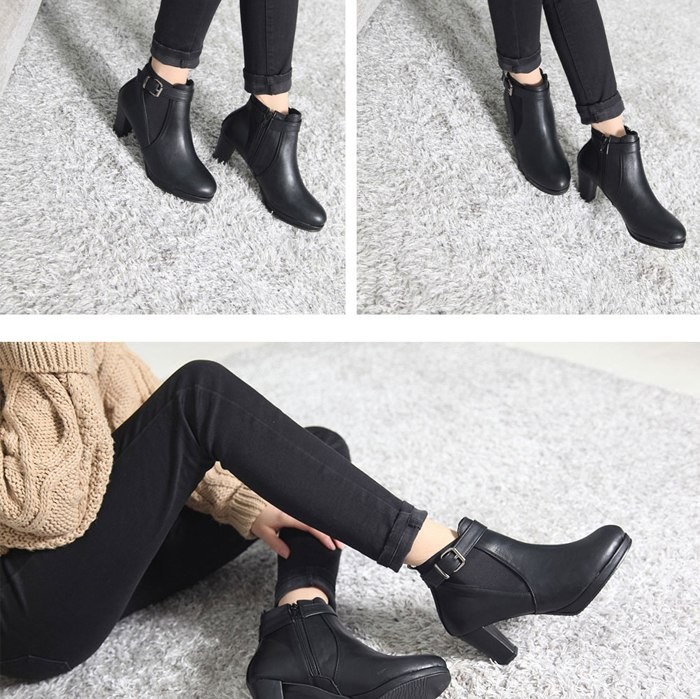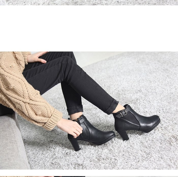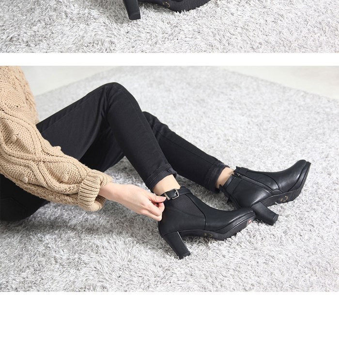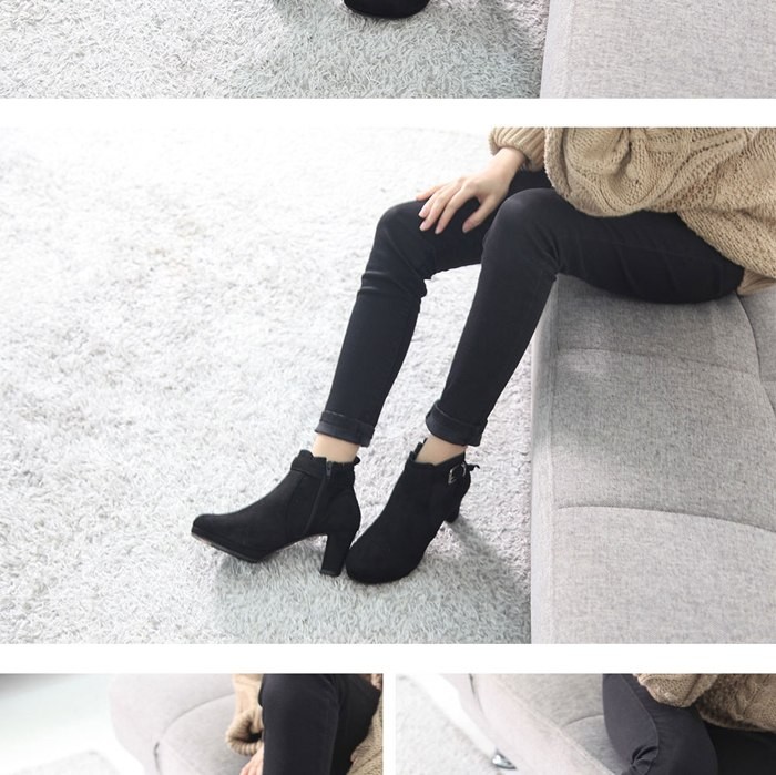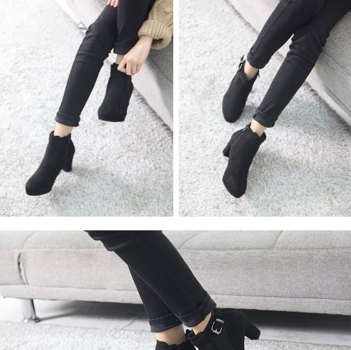 商品名:ブーティ レディース ブーティー チャンキーヒール 太ヒール サイドゴア 2017 秋冬 ファッション 靴 婦人靴