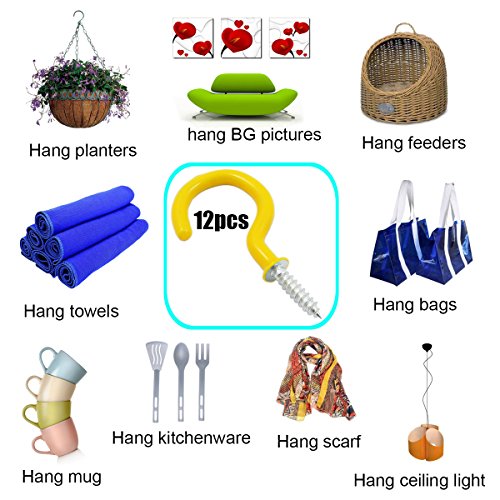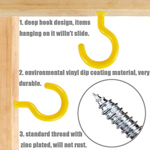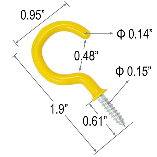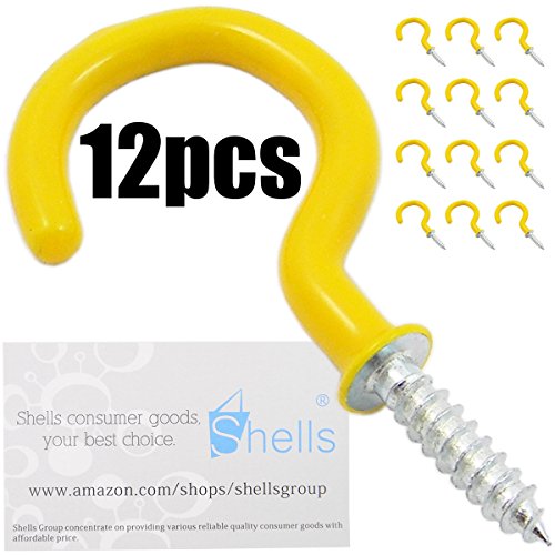 Shells 12PCS Yellow Color 1.9 Inches Vinyl Coated Hooks Cup Hooks Round End Screw Hooks Self-tapping Screws Hooks Question Mark Shape Hooks