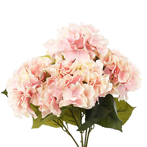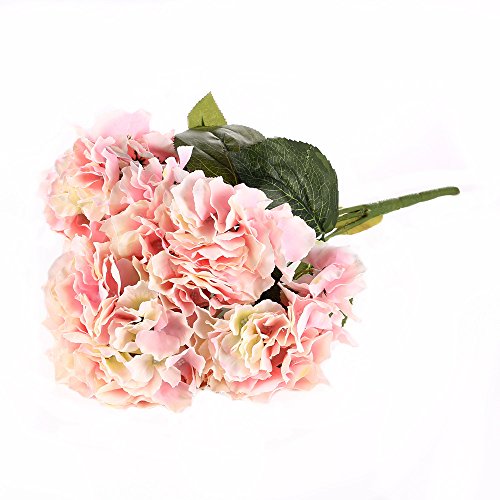 Duosuny Artificial Silk Fake 5 Heads Flower Bunch Bouquet Home Hotel Wedding Party Garden Floral Decor Hydrangea (Pink)