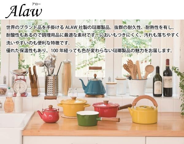 琺瑯の持つ優しさと色合いを最大限に生かしたIH対応のキッチンウェア、ノルディカシリーズ。北欧風デザインでキッチンを彩ります。 木製のハンドルがキッチンをナチュラルに演出します。 |
