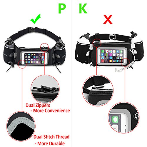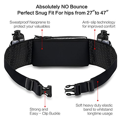 uFashion3C Hydration Running Belt Waist Pack Pouch Bag with 2 BPA Free Water Bottles (No Bounce) for iPhone 7,6S,6,Plus, Samsung Galaxy J7,S8,Plus,S7,S6,Edge, Note 5 4 3, LG G6 G5 G4 G3, MOTO Phones