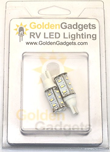 Brand:Golden Gadgets Part Number:RV-T10-15LED-MINI-WHT-2PAK Item Weight:0.64 ounces Product Dimensions:1.5 x 0.5 x 0.5 inches Item model number:RV-T10-15LED-MINI-WHT-2PAK Assembled Height:0.5 inches Assembled Length:1.5 inches Assembled Width:0.5 inches Color:white Shape:Cone Voltage:12 volts Specific Uses:Indoor use only Fixture Features:Instant On, Shock and vibration resistant Type of Bulb:LED Luminous Flux:200 lm Wattage:2 watts Incandescent equivalent:15 watts Bulb Features:Instant On Color Temperature:5700 Kelvin Color Rendering Index (CRI):80.00 Bulb Diameter:0.5 inches Bulb Length:1.5 inches Shipping Weight:0.64 ounces (View shipping rates and policies)