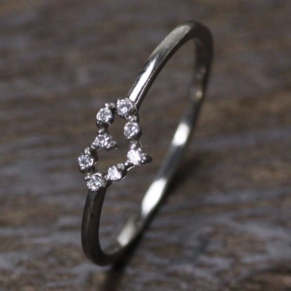 キュービックジルコニアを散りばめたオープンハートのステンレスリングです。