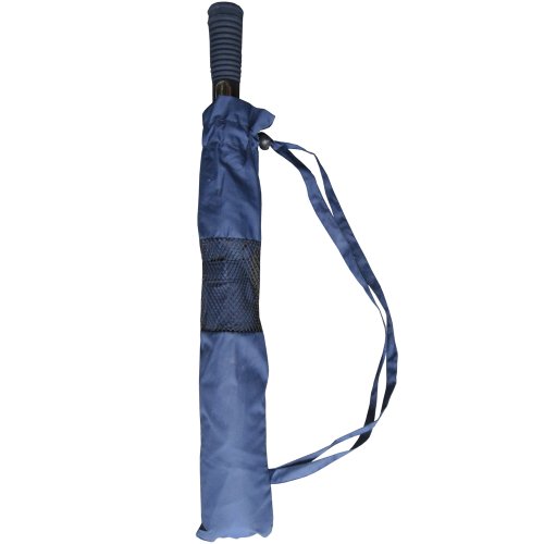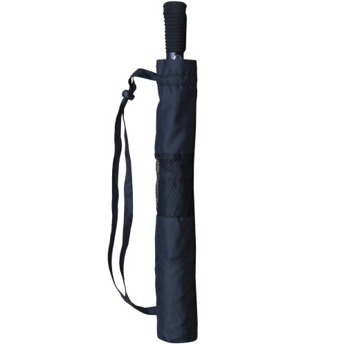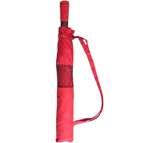Product Description This Rain Stoppers 56" Arc Auto Open Double Canopy Golf Size Umbrella is Collapsible and constructed with fiberglass ribs. Finished with a nice matching foam handle and a Matching Mesh Carry case. 0