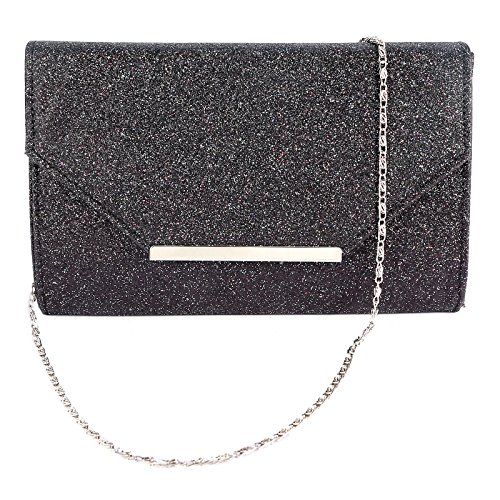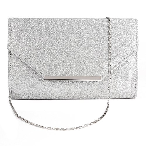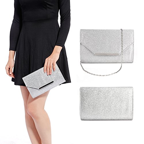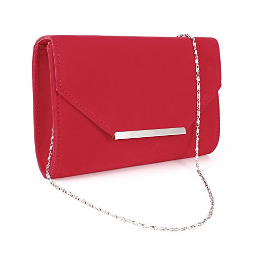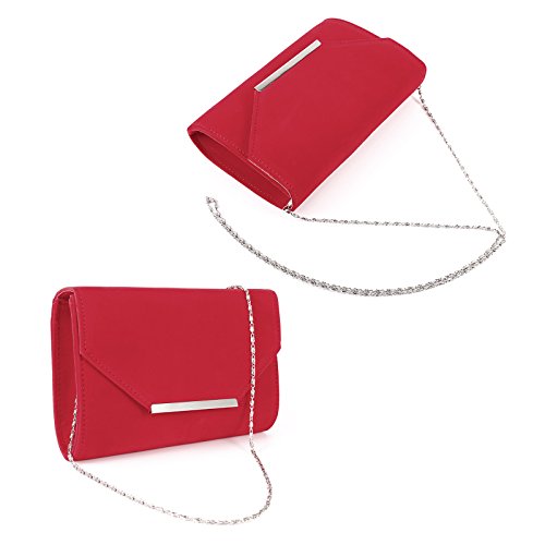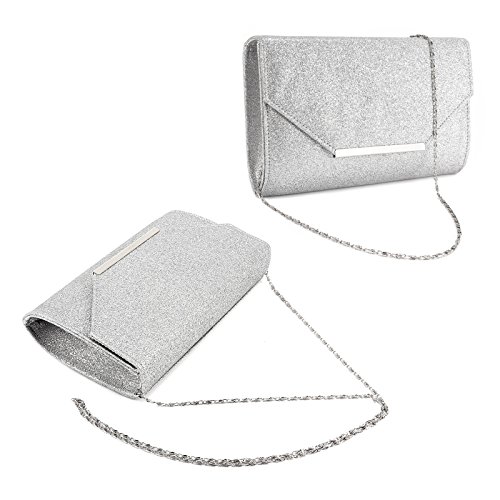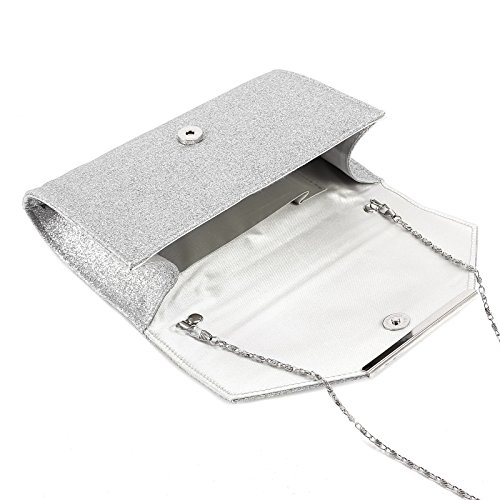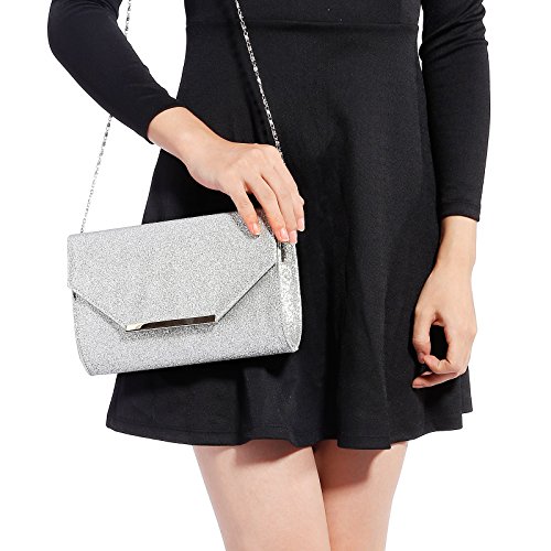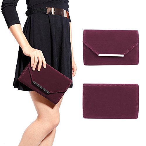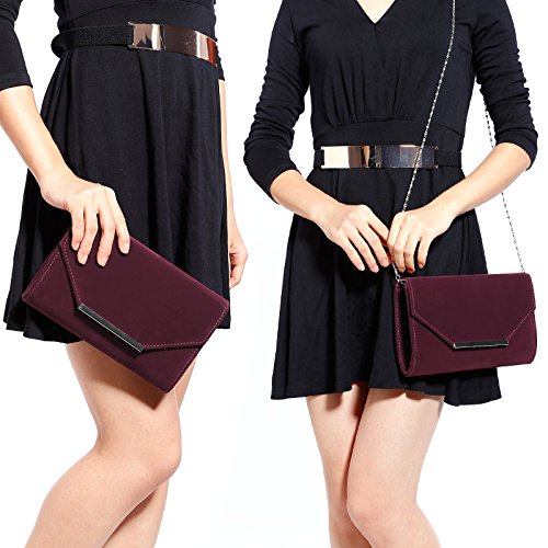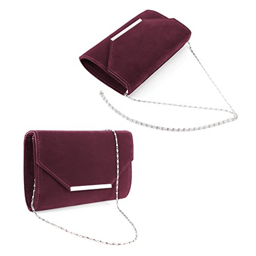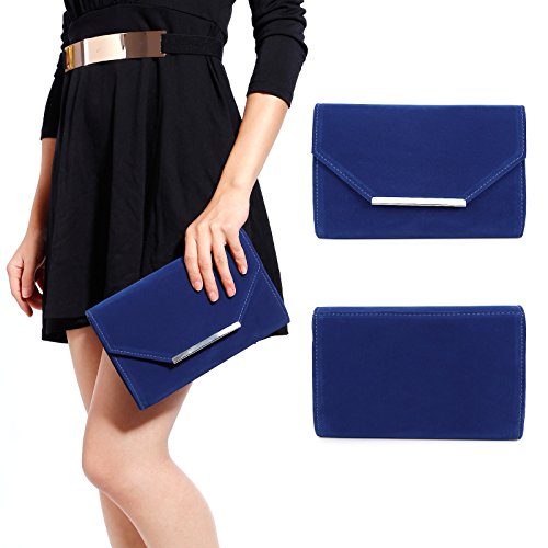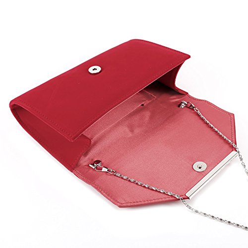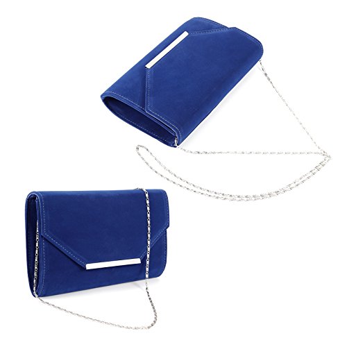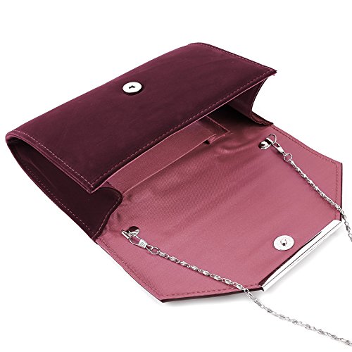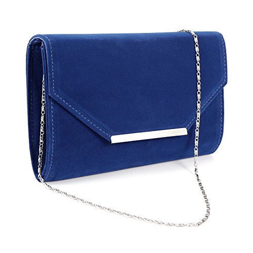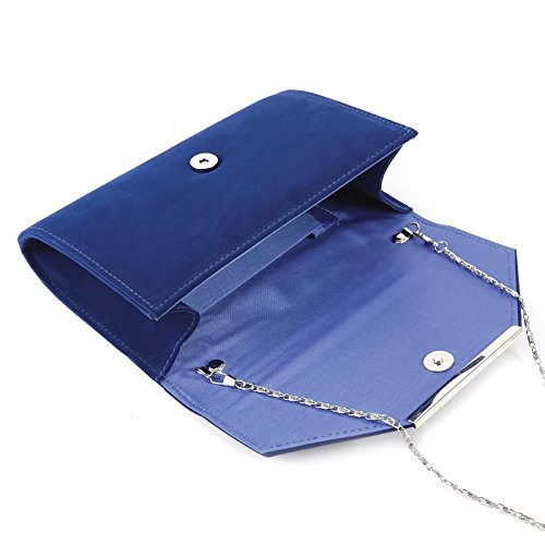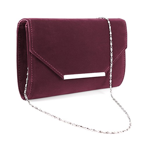 | Anladia Envelope Flap-Top Silver-Tone Metal Bar Velvet Clutch Women Chain Strap Handbag |