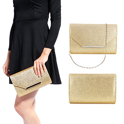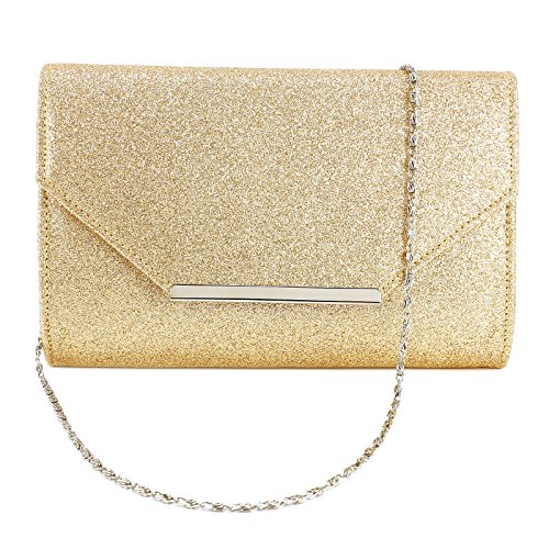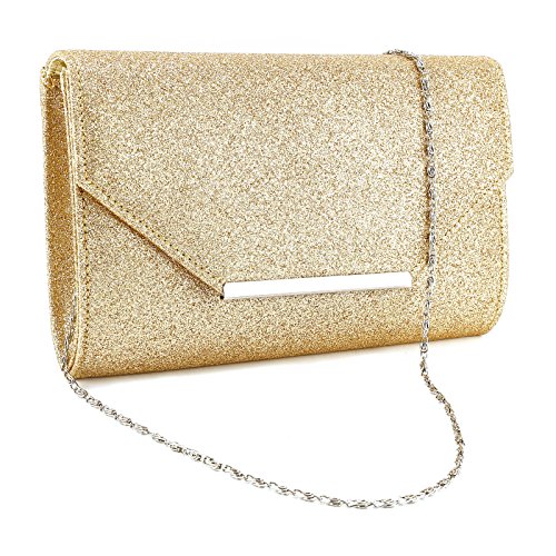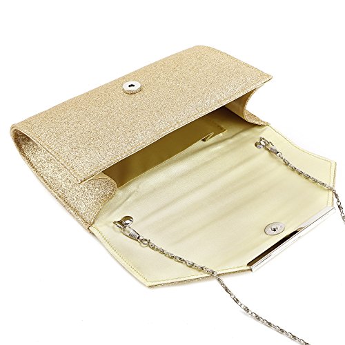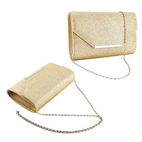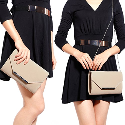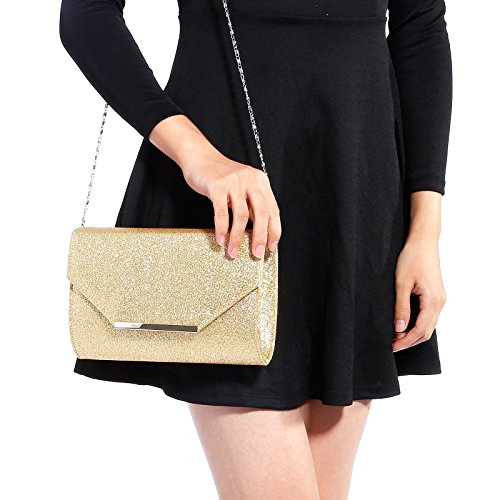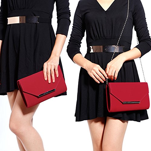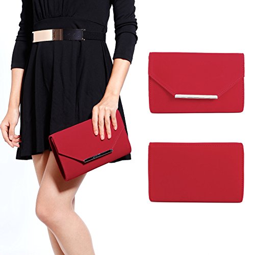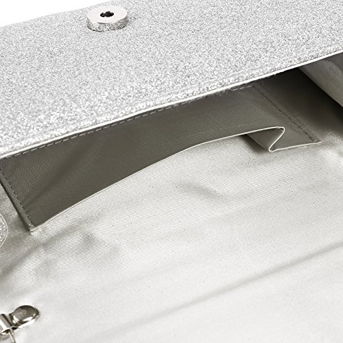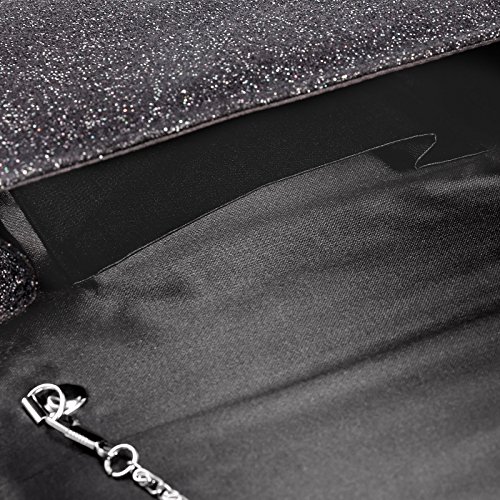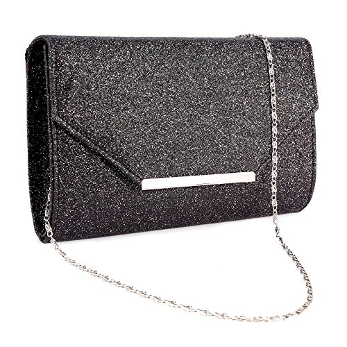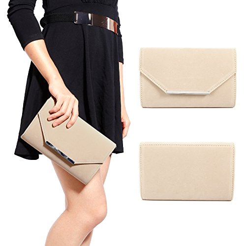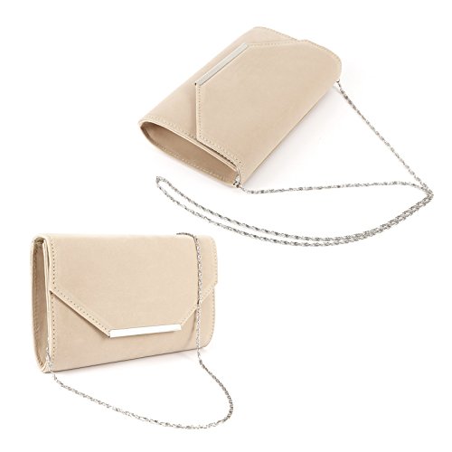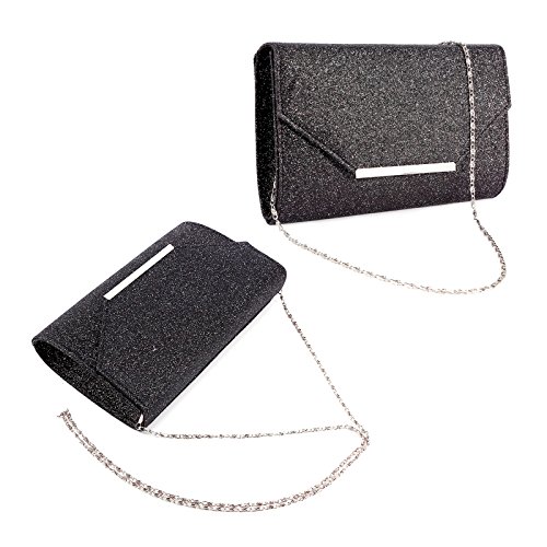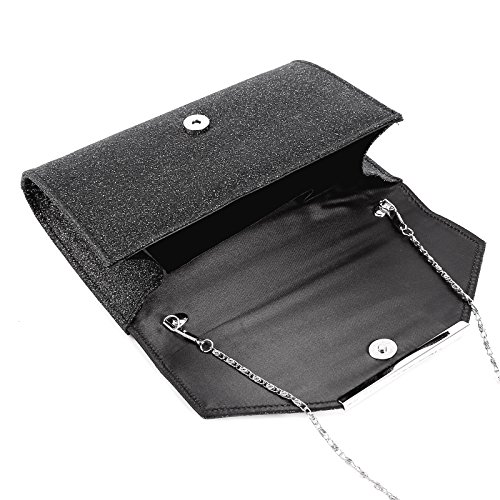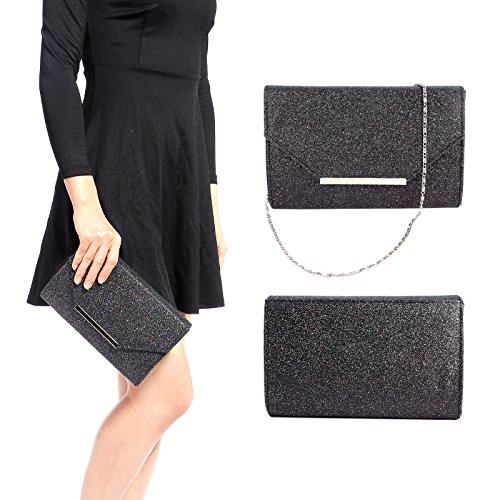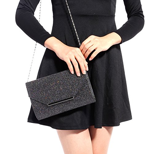 | Anladia Envelope Flap-Top Silver-Tone Metal Bar Velvet Clutch Women Chain Strap Handbag |